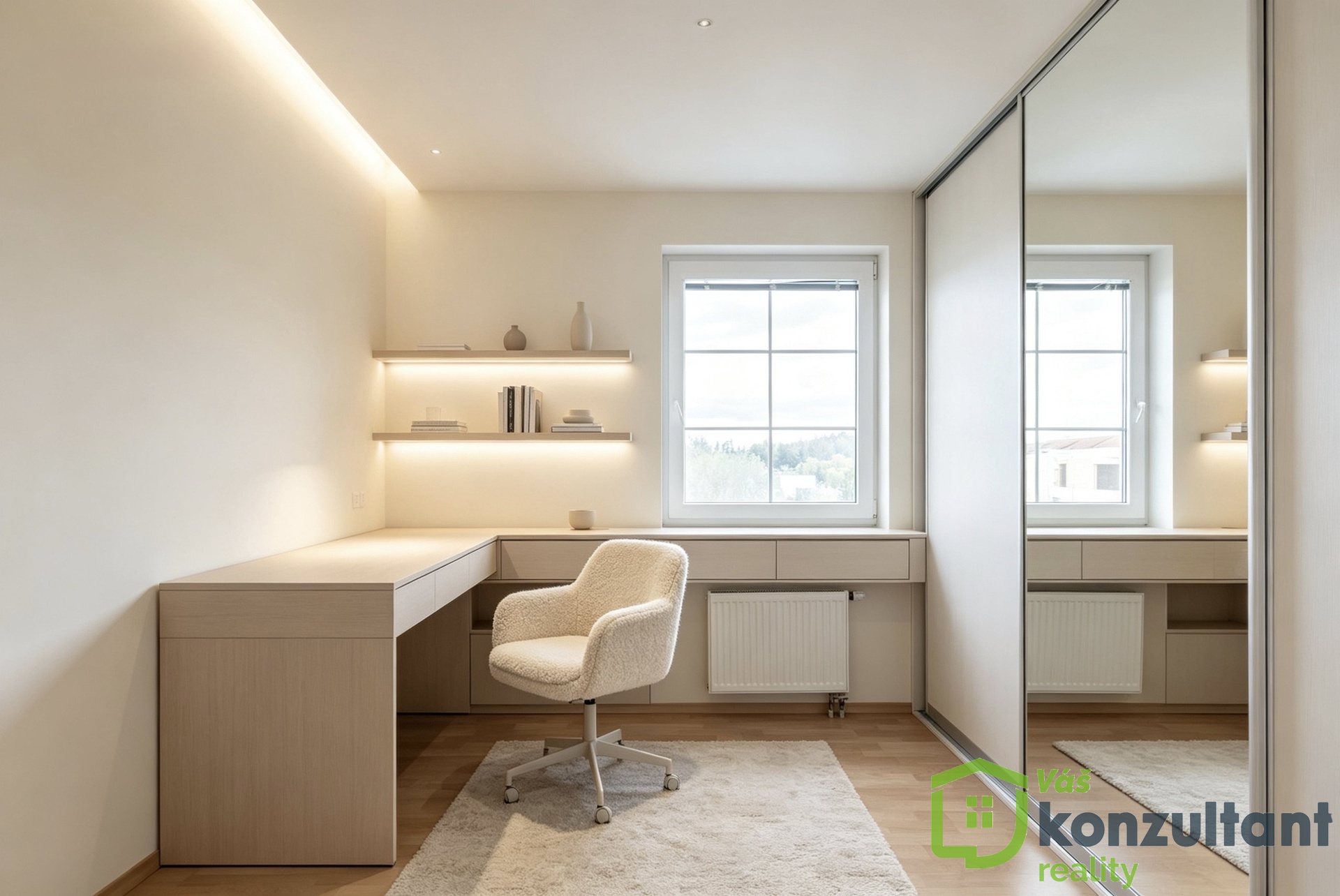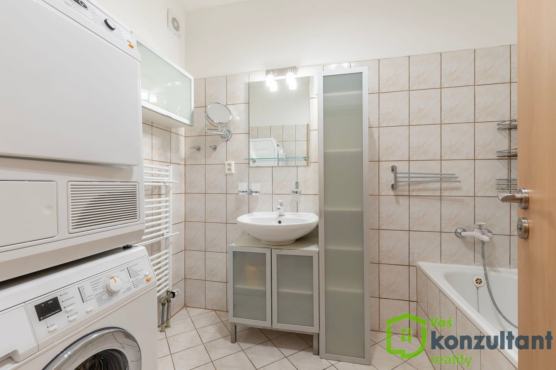 Byt disponuje množstvím úložných prostor díky vestavěným skříním, takže je zde dostatek místa pro vše potřebné bez nutnosti kompromisů. Koupelna je vybavena vanou, pračkou i sušičkou, toaleta je samostatná, což zvyšuje komfort každodenního užívání. Podlahy jsou řešeny kombinací plovoucí podlahy a PVC, což je praktické a snadno udržovatelné.