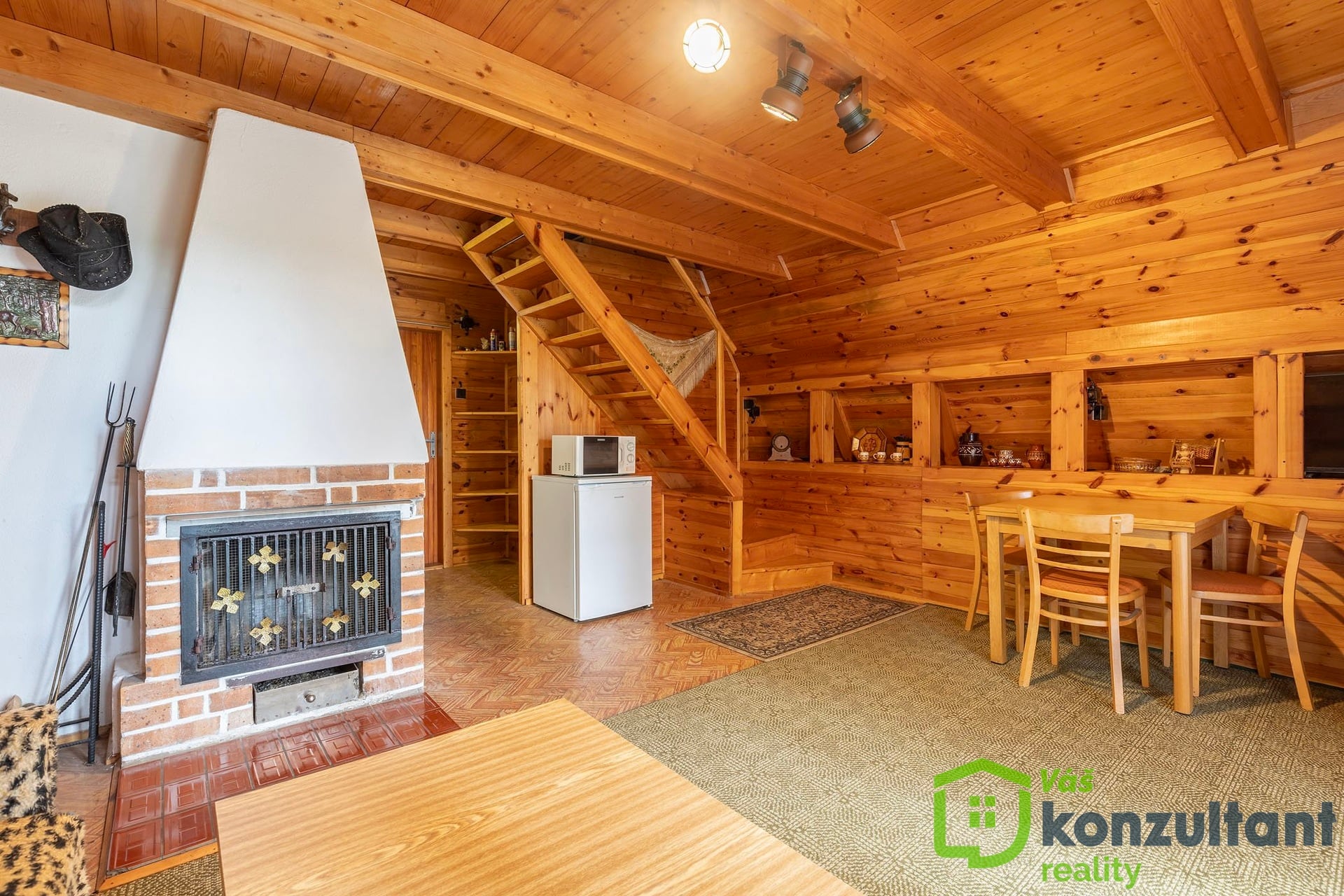Přízemí: předsíň, malá kuchyňka, obytná místnost s krbem a vstupem na venkovní terasu