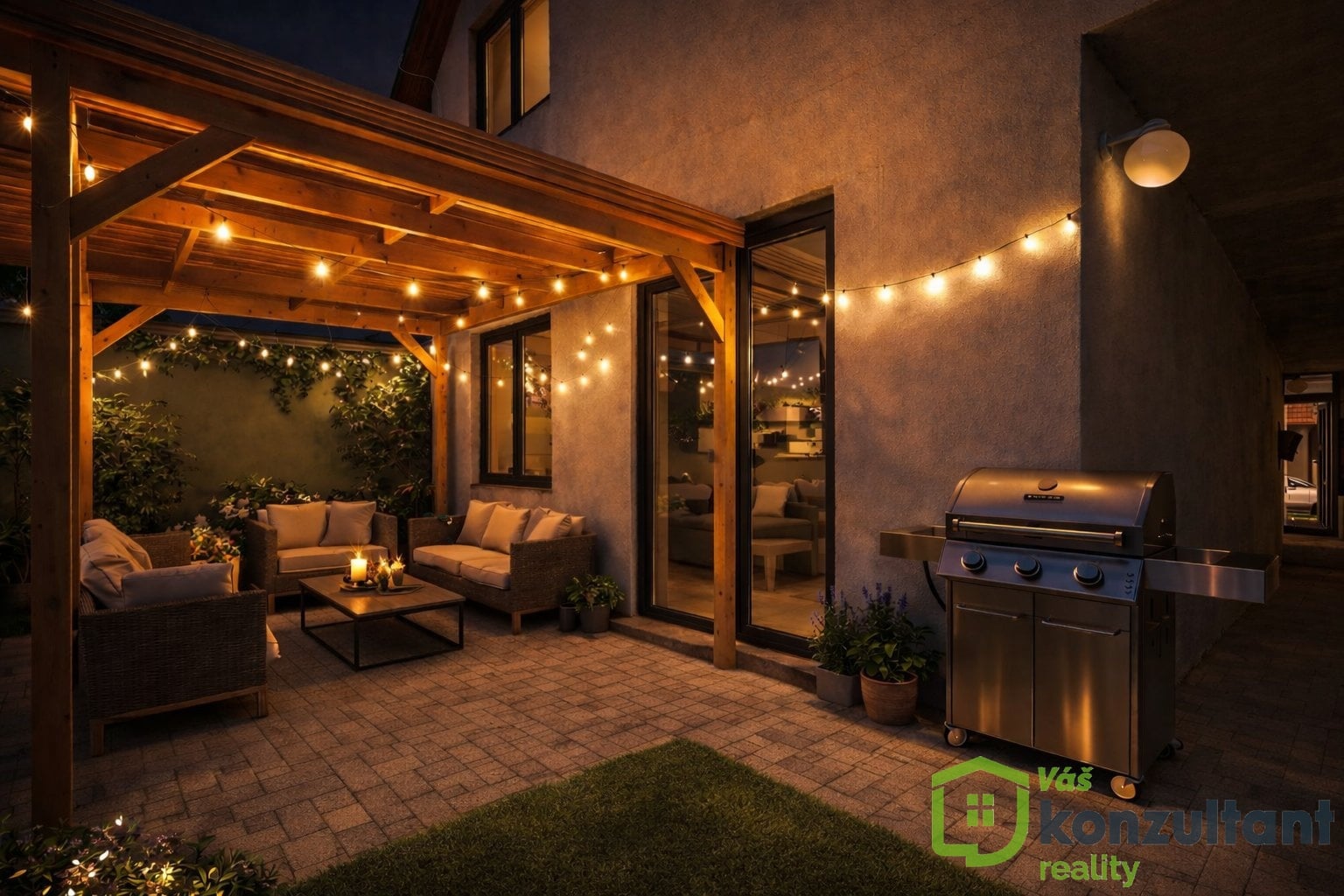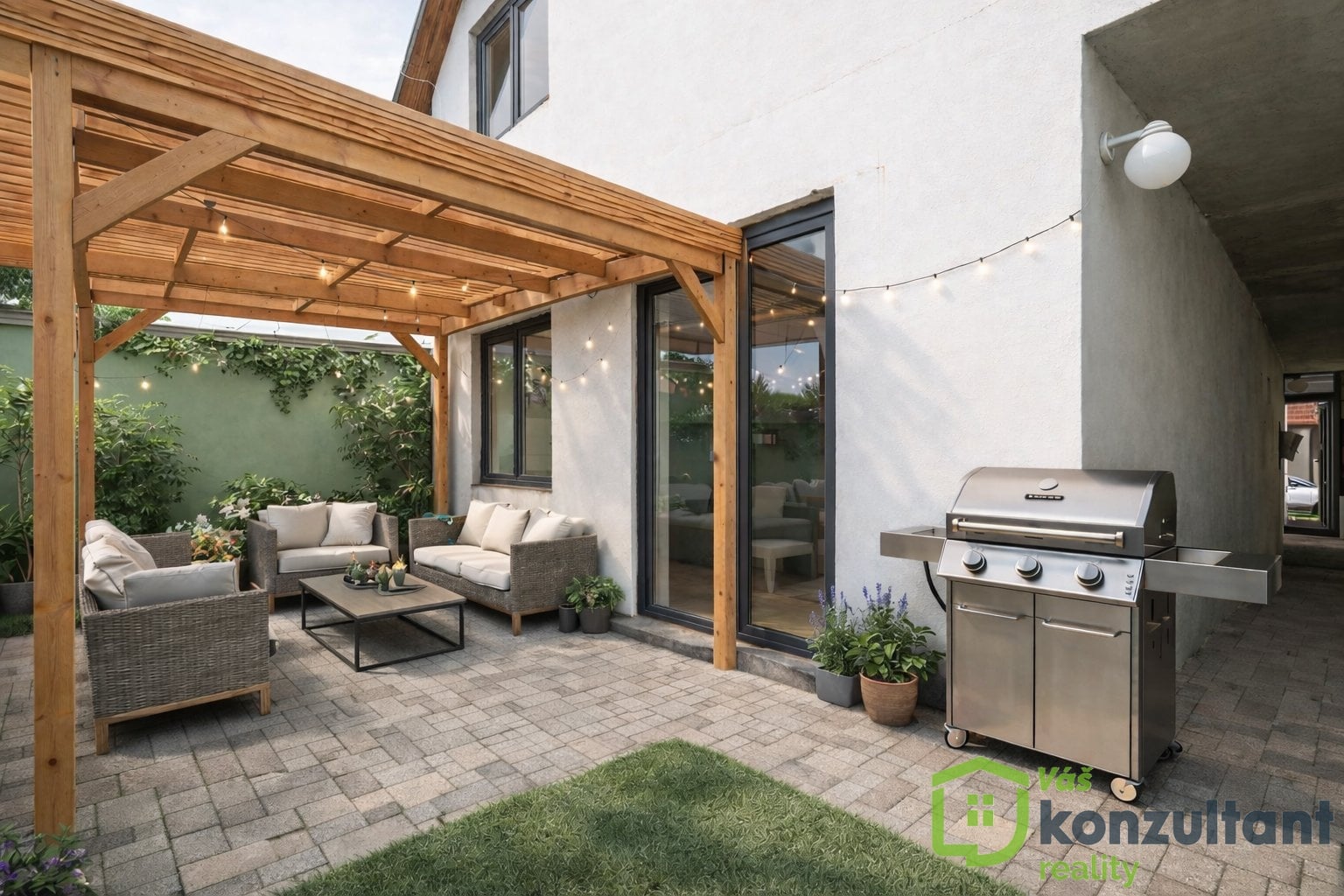 Jde o ideální prostor pro relax, grilování i menší hobby aktivity, které dodávají domu další hodnotu.