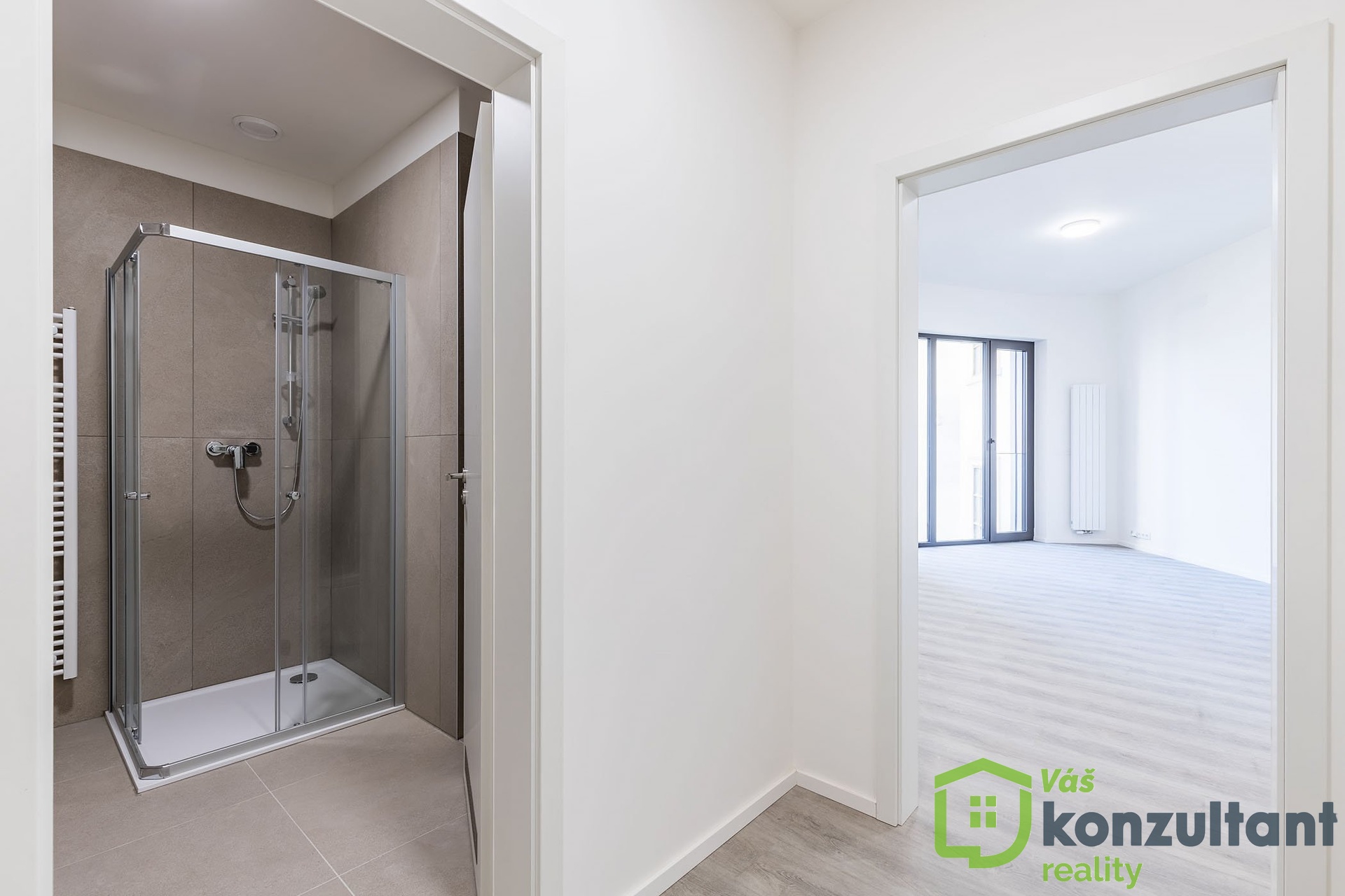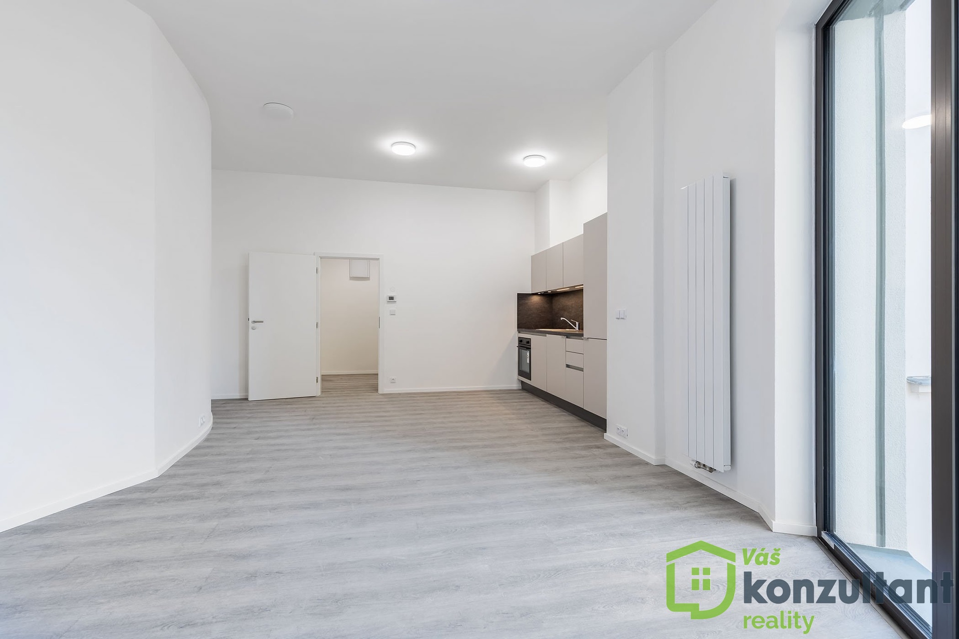 Obývací část pokoje je bez vybavení.